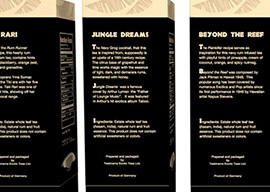 Let the ritual of the savage begin! This is a branding project for a rum-infused iced tea series based on popular Tiki-bar recipes. This non-alchoholic beverage is a great way to enjoy an exotic work-safe "Tiki-bar moment" without the hangovers. The ceramic loose leaf tea cannisters are inspired by collectible tiki mugs for the extra nostalgic look.